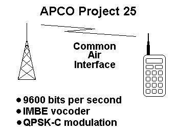 In January 1982, during a snowstorm, Air Florida flight 90 crashed into the 14th Street bridge in Washington, D.C. Half an hour later a Metrorail accident occurred just a few miles away. Responding rescue personnel from federal, state, and local public safety agencies quickly discovered that coordinating their efforts was extremely difficult because radios from each agency used different frequencies and signaling techniques. On-scene commanders were forced to borrow radios from one another to coordinate their crew activities. More recently, the Oklahoma City bombing further emphasized the need for interoperability. More than a dozen search and rescue teams arrived, each with at least fifty personnel and their own communications system. The systems, for the most part, could not communicate with each other. Two-way radio was the only way to relay information back to dispatchers and request specific support, since wireline and cellular phone lines were damaged or overloaded. At one point it became so bad that one agency had to resort to sending runners with messages. Major natural disasters such as hurricanes, earthquakes, and floods are typically handled by several different public safety agencies where the ability to communicate between agencies is also a necessity. Project 25 To address the problem of interoperability as well as make better use of scarce radio frequencies, in 1989 the Association of Public Safety Communications Officials International (APCO) established Project 25 (P25). Representatives from Federal, state, and local governments began an effort to develop a set of common technical standards for land mobile radio systems. An additional benefit of a common standard would allow any number of manufacturers to produce compatible equipment, thus increasing competition and lowering prices. P25 promised to avoid locking customers into a proprietary system from a single manufacturer. Equipment manufacturers control most standards processes. In contrast, P25 documents were developed by the Telecommunications Industry Association (TIA) based on user community needs, then approved by the APCO Project 25 Steering Committee. Phase I of P25 is nearly complete, with 30 of 32 standards documents now available, totaling more than 1800 pages. P25 is not a single standard but really a number of individual protocols that can be mixed and matched. A "Project 25 compliant" system may really use only a few of the many standards. For instance, a P25 system may be conventional or trunked, use encryption or transmit in the clear, and carry voice, data, or both. Common Air Interface P25 systems use what is called the Common Air Interface (CAI). This standard specifies the type and content of signals transmitted by compliant radios. One radio using CAI should be able to communicate with any other CAI radio, regardless of manufacturer.